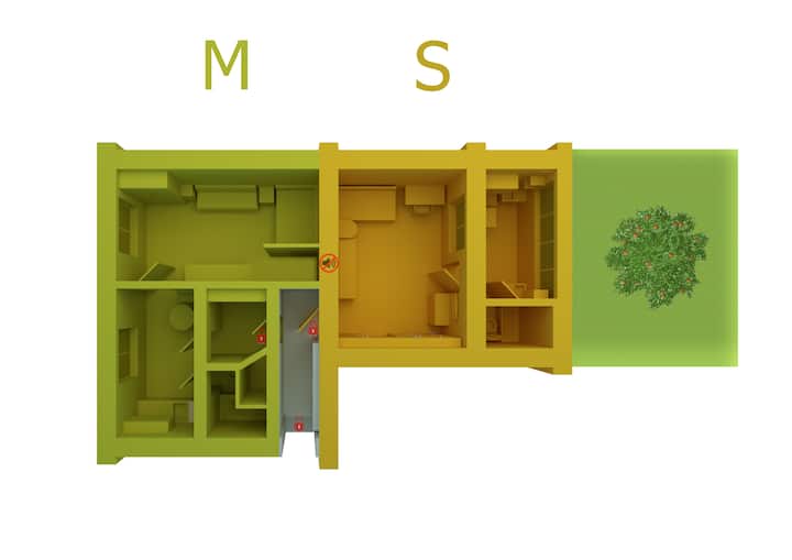 1 ორადგილიანი საწოლი, 2 გასაშლელი დივანი