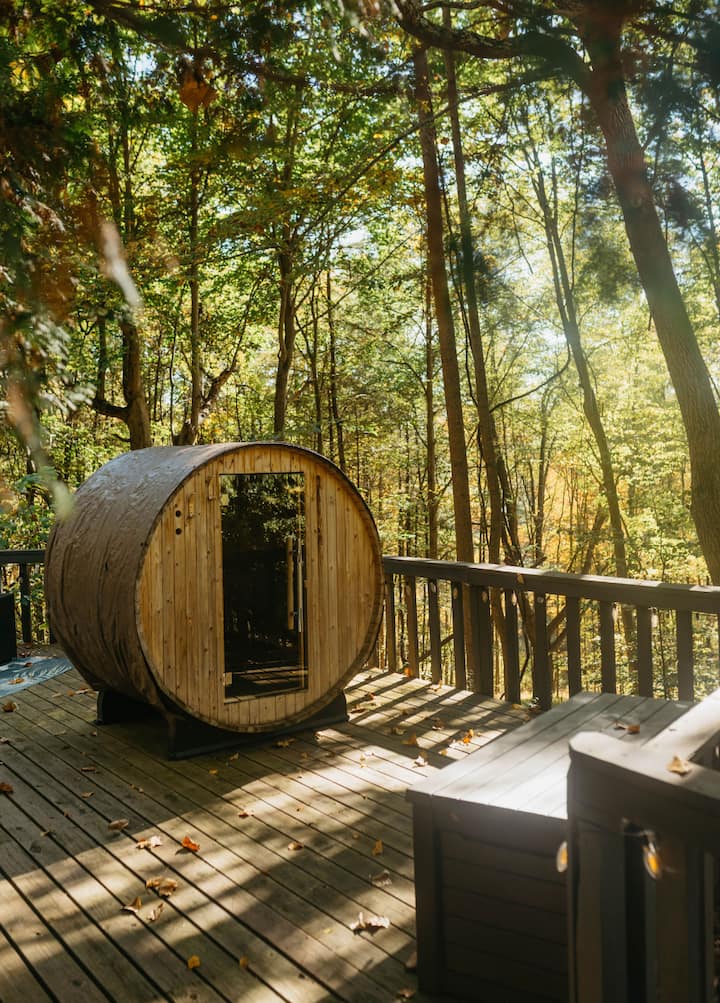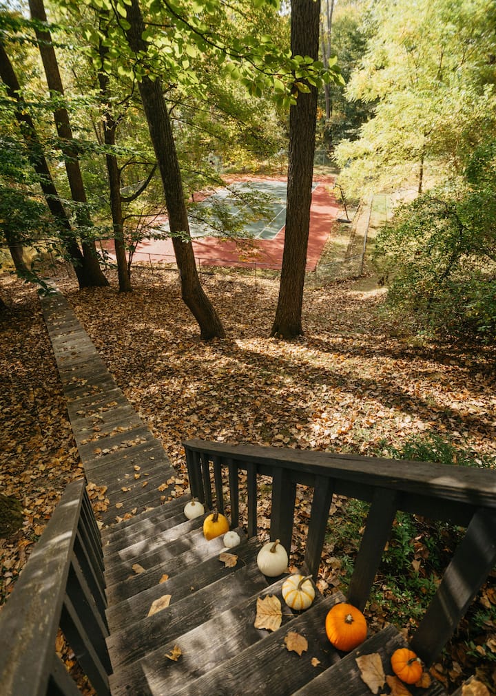 Ვუდლენდის დამალვა: საუნა, ჩოგბურთის მოედანი და 15 ჰექტარი