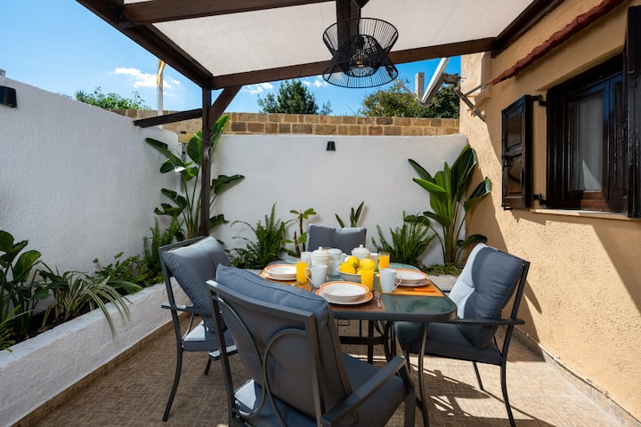 - დასასვენებლად დასაქირავებელი საცხოვრებლები გარე დასაჯდომი ადგილებით: როდოსი