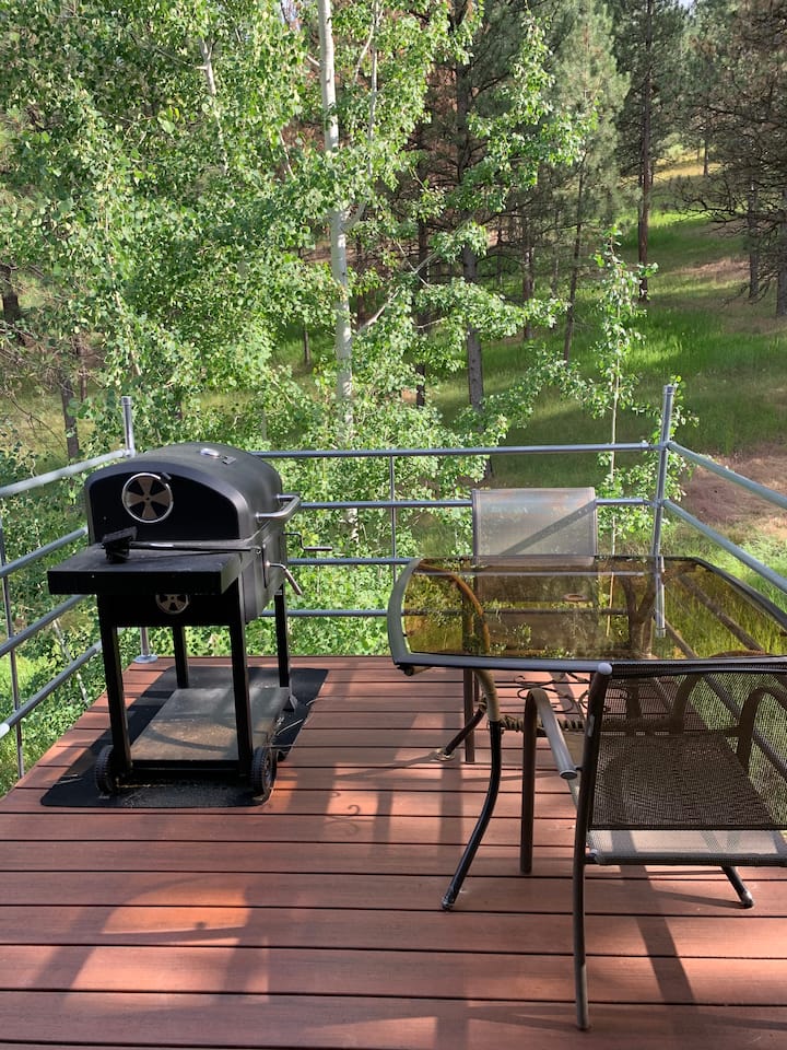 Ბინა, რომელიც მდებარეობს ტყეში, ქალაქიდან წუთის სავალზე