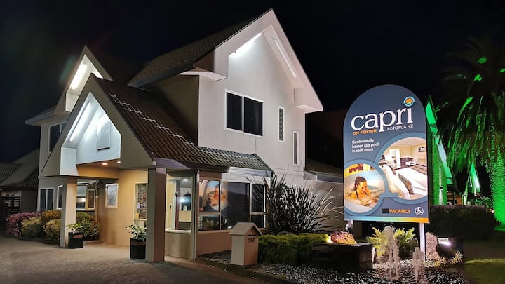 Capri on Fenton პოპულარული მოტელია ოჯახებისა და კორპორაციული კლიენტებისთვის, რომელსაც გამარჯვების განწყობა აქვს. Capri on Fenton არის „The Arista Group“‑ის ნაწილი, რომელსაც მართავს სტუმრების საყვარელი Morgen Waghorne. მორგენს ჩვენი ფანტასტიკური გუნდი ეხმარება, ამიტომ დარწმუნებული იყავით, რომ შესანიშნავ დროს გაატარებთ. 2023 წელს Tripadvisor‑ის მიერ ახალი ზელანდიის 25 საუკეთესო პატარა სასტუმროს სიაში შევიდა, ამიტომ არჩევანი შეგიძლიათ მშვიდად გააკეთოთ. Სიამოვნებით გიმასპინძლებთ :)