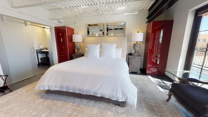 Lincoln 503 არის სრულად მოწყობილი, ლუქს-კლასის დასასვენებელი სახლი, რომელიც მდებარეობს The Lincoln-ის ზედა სართულზე, ხუთსართულიანი შენობა სანტა-ფეს ცენტრში. Დაისვენეთ და დაისვენეთ, როგორც ჩვენი VIP სტუმრები და დარწმუნებული იყავით, რომ აქ, The Lincoln-ში, თქვენ ხართ როგორც „Downtown Luxury, and Santa Fe Style“, როგორც შეგიძლიათ მიიღოთ. Lincoln 503 გთავაზობთ ფართო ხედებს, სიწყნარეს, უსაფრთხოებასა და კომფორტს ლამაზად გაფორმებულ პენტჰაუსში, რომელიც სანტა ‑ ფე ‑ პლაზამდე ერთ ბლოკზე ნაკლებ მანძილზე მდებარეობს. Სტუმრების დიდი საძინებლიდან, ჩრდილოეთ პატიოზე, შეგიძლიათ თვალი ადევნოთ მზის ამოსვლას სანგრე-დე-კრისტოს მთებზე, დაათვალიეროთ ასპენსი, შეიცვალოს ფერი სანტა-ფეს სათხილამურო აუზის გარშემო და დაგეგმოთ გასეირნება მოწამეთა ჯვარზე ან ატალაიას ქედზე, რომელიც უბრალო ხედით იშლება, როცა აღმოსავლეთ პატიოზე ყავა გსიამოვნებთ. Თქვენი ფართო მისაღები ოთახიდან კომფორტული ავეჯი მოგიწვევთ, რომ დაბინავდეთ და დატკბეთ ცეცხლით, კობალტის ლურჯი ცითა და სისხლისფერი მზის ჩასვლით, ასევე, პლაზასა და დასავლეთის მთების ხედებით.