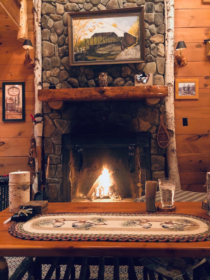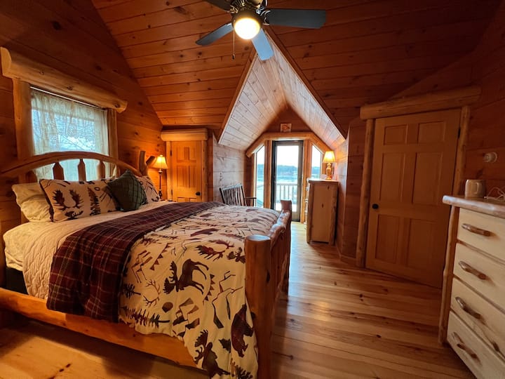 Წყლისპირა ხის სახლი ვაშინგტონის მთის ხედით