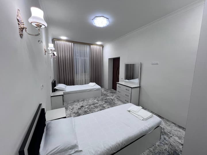 1 საწოლი 193×203 სმ, 1 გასაშლელი დივანი, 1 ტახტი