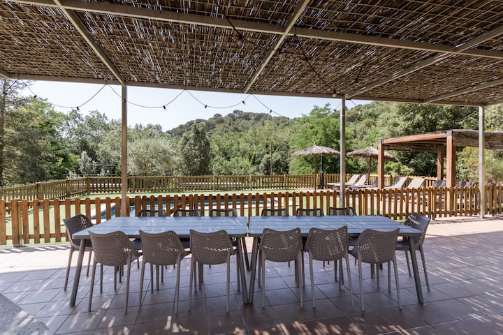 მე ვმართავ ჩემი ოჯახის ამ ტიპურ კატალონიურ ფერმას, რომელიც ტყის შუაგულში მდებარეობს, ასე რომ შეგიძლიათ დრო გაატაროთ ოჯახის წევრებისა და მეგობრებისგან მოშორებით. გარე სივრცე იდეალურია დასასვენებლად, რადგან აქ არის აუზი და ბარბექიუ. ამას გარდა, პლაჟამდე 20 წუთის, ბარსელონამდე კი 30 წუთის სავალი გზაა.