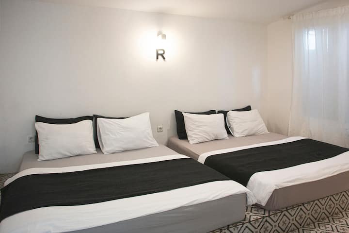 1 საწოლი 152×203 სმ, 7 ლეიბი იატაკზე