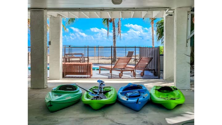 ოკეანისპირა საცხოვრებელი ფლორიდა‑კიზში საუკეთესო არჩევანია. აქ არის კერძო საცურაო აუზი, დახურული პატიო და ვერანდები, ასევე, ოთხი კაიაკი, რომლებითაც ყოველ დილას წყალზე გასეირნება შეგიძლიათ. ასევე გექნებათ ნიჩბები და გადარჩენის ჟილეტები.