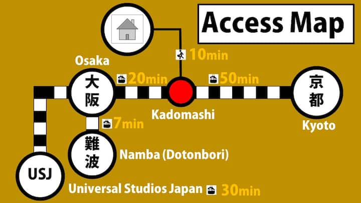 Კარგ ადგილებში, ოსაკას სადგურიდან 20 წუთის სავალზე.