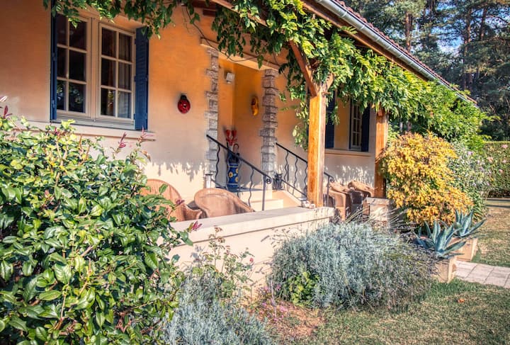 Ბაღი სავსეა ხეხილით, ბატუტით ბავშვებისთვის, მოსახერხებელი გარე საშხაპით და ბევრი მღერიანი ფრინველის ხმებით.