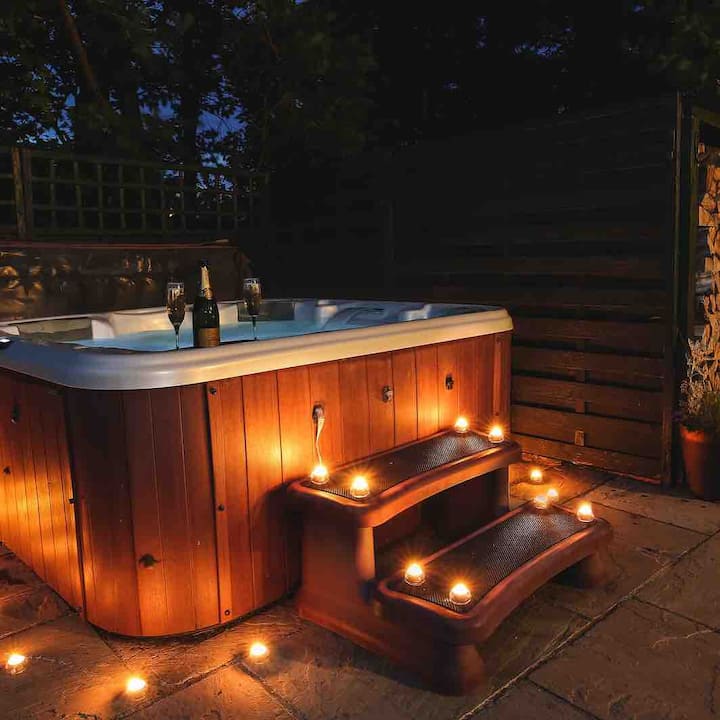Განმარტოებული კოტეჯი ძალიან პირადი ჰიდრომასაჟიანი აუზით.