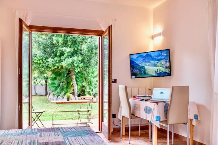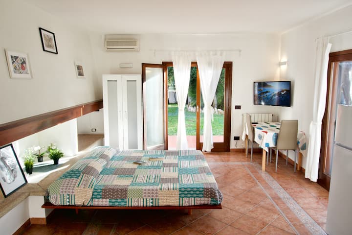 Ასინარა, ორადგილიანი ოთახი სამზარეულოთი და ბაღით