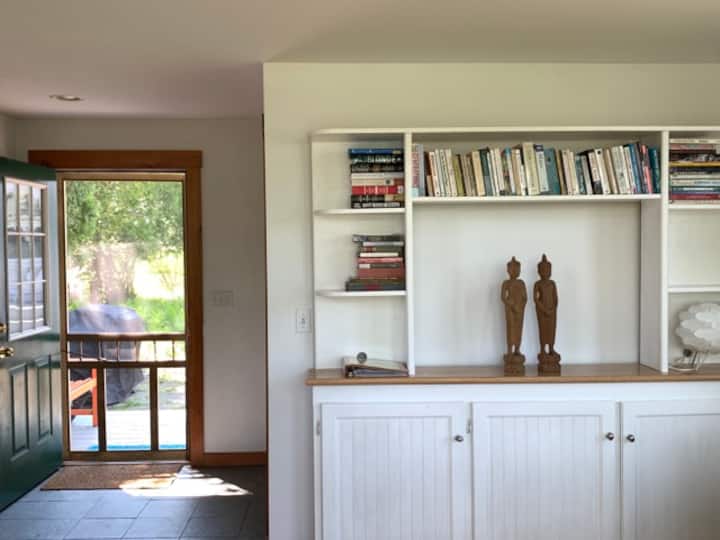 Და ეს არის მერი. Ჩვენ ვართ თქვენი მასპინძლები. Ჩვენ უკვე ათი bumpy ბედნიერი წლის განმავლობაში ვცდილობთ, რომ მოკირწყლონ ცხოვრება სამი შორეულ შტატში ხუთი შვილი ჩვენს შორის. 2014 წელს AirBnB-ში გადავედით. Ჩვენ გვიყვარს ეს და გვინდა, რომ ეს იყოს ჩვენი მთავარი, და ეს არის ის, სადაც თქვენ შემოდიხართ. Რატომ მენი, იკითხავთ? Ჩემს დედათა ოჯახს აქ დიდი ხნის წინ სცილდება. Ისინი იყვნენ გემთმშენებლები და პოლიციელები, ფიცხი ხალიჩები და მამაკაცი ნე-ერ-როუ, და დედაჩემმა დატოვა ჩემი დები და მე ერთი მუჭა თვისებები, რომლებსაც ჩვენ ახლა ვმართავთ. Ჩვენ ჯერ არ ვშლით ყოველდღიურ სამუშაოებს, მაგრამ ვცდილობთ, რომ ახლა საუკეთესო ცხოვრება გვქონდეს. Მე ვარ ყოფილი ჟურნალისტი და მწერალი, რომელსაც უცხოვრია და მუშაობდა მთელ მსოფლიოში. Მერი დჰარმის იოგისა და განათლების აქტივისტია, რომელსაც უყვარს ვეგანური კერძების მომზადება. Ჩვენ დიდ სიყვარულს ვდებთ ჩვენს სახლებში. Ჩვენ გვყავს შესანიშნავი ადგილობრივი დასუფთავების გუნდი, რომელიც ინარჩუნებს მათ ცქრიალა სისუფთავის შენარჩუნებას და ფერადკანიან სიმბოლოებს, რომლებიც დუღს, ბურღულეულს და, ზოგადად, შოუს გზაში ინახავენ. Ჩვენ ძალიან კარგად ვიცნობთ ამ ტერიტორიას და სიამოვნებით ვუზიარებთ ამ ცოდნას სტუმრებს. Ვიმედოვნებთ, რომ თქვენც ისევე მოგეწონებათ ჩვენი სახლები, როგორც ჩვენ.