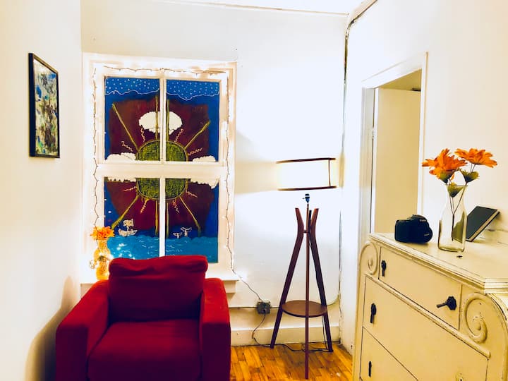 Დიდი ოთახი ცალკე შესასვლელით ბოჰემურ ხელოვნების ლოფტში