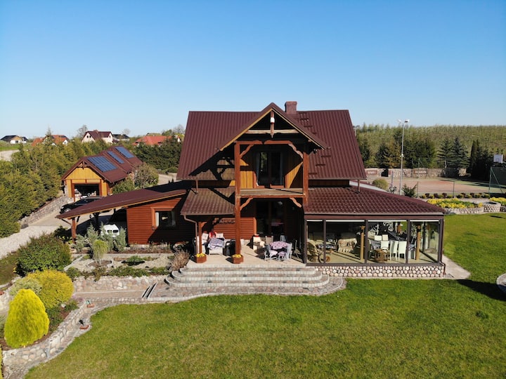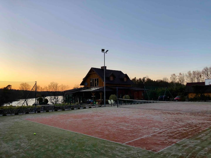 Ტბის სახლი კერძო კორტით, ჯაკუზით,საუნით