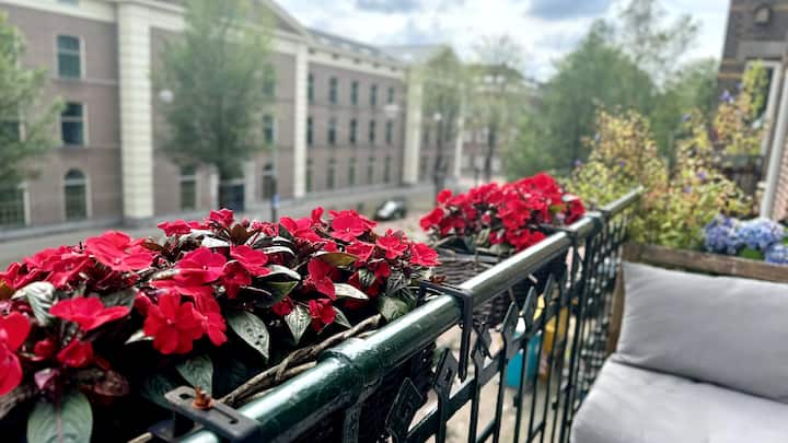 - დასასვენებლად დასაქირავებელი საცხოვრებლები გარე დასაჯდომი ადგილებით: ამსტერდამი