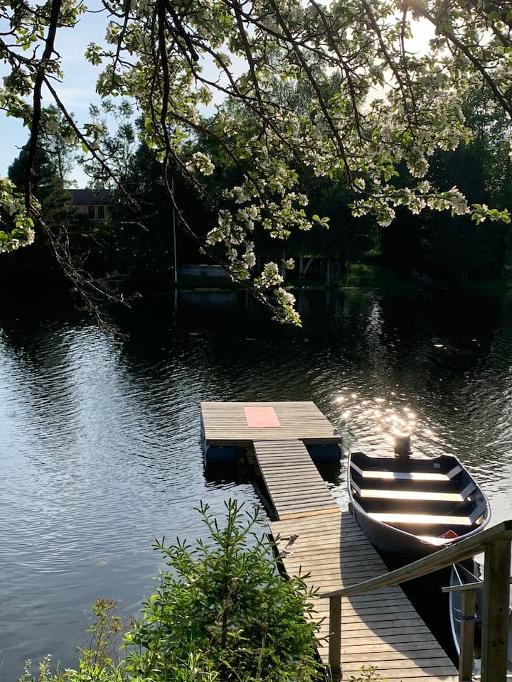 Მომხიბლავი 40- ის მდინარისპირა კოტეჯი წყალზე გასასვლელით