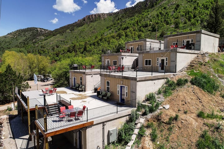 - დასასვენებლად დასაქირავებელი საცხოვრებლები გარე დასაჯდომი ადგილებით: Lava Hot Springs
