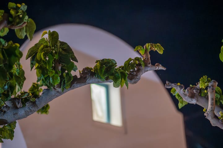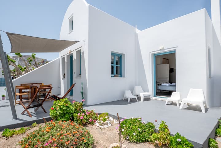 - დასასვენებლად დასაქირავებელი საცხოვრებლები გარე დასაჯდომი ადგილებით: სანტორინი