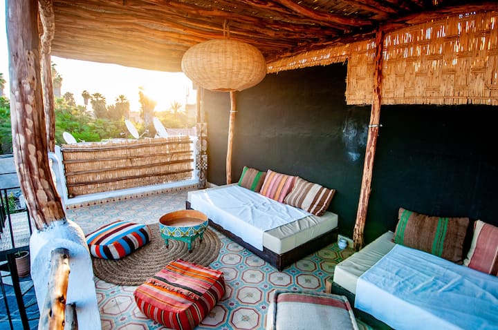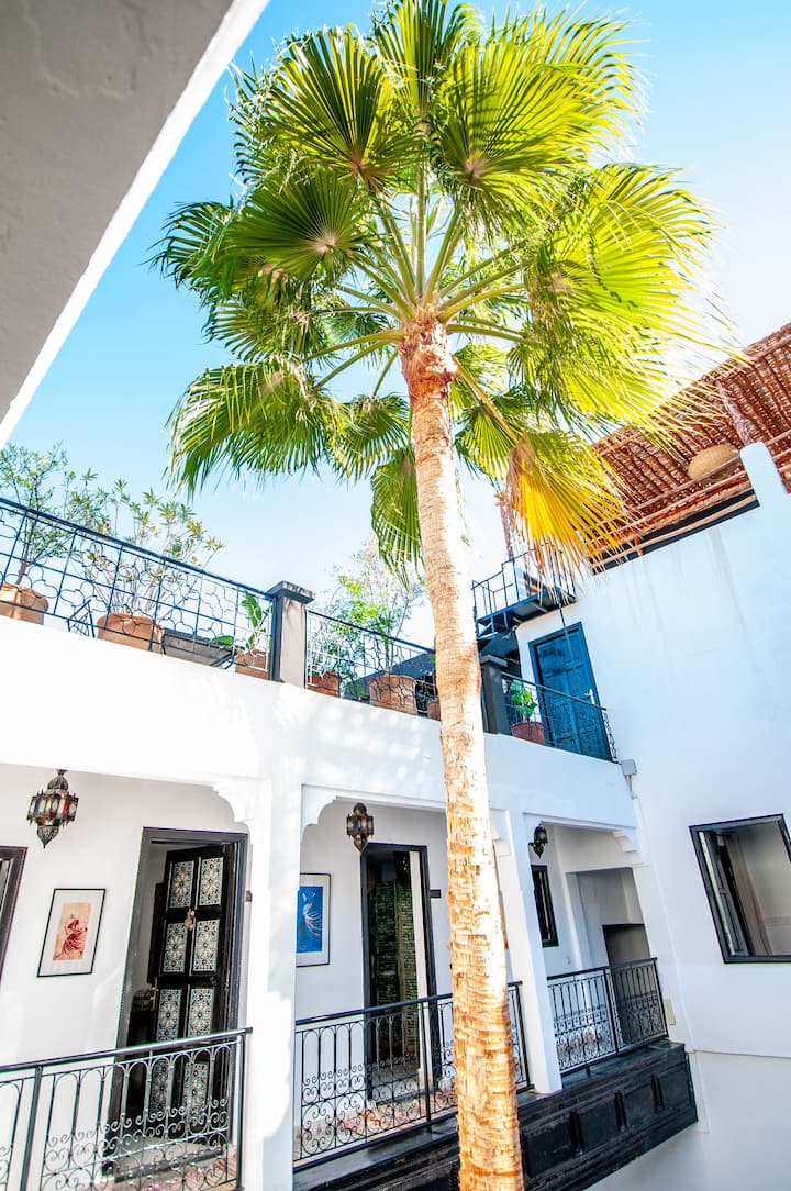 PORTE BAB LAKSOUR-თან ახლოს, იდეალური გეოგრაფიული მდებარეობა სუკებში ჩასასვლელად (2 წუთი ფეხით), შეუერთდით ჯემაას ელ-ფნას მოედანს (5 წუთი ფეხით) ან გაემგზავრეთ ახალ ქალაქში (გუელიზი - ჰივერნაჟი ფეხით 15 წუთის სავალზე), რიად-მაკილა არის ძველი სახლი მედინაში ავთენტური მარაკეშის არქიტექტურით, რომელიც მოიცავს 400მ ² -ს.