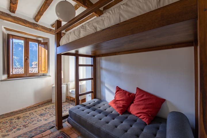 1 გასაშლელი დივანი, 1 ორსართულიანი საწოლი