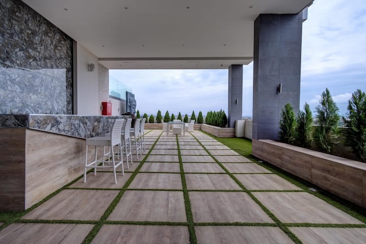 Ლუქს-კლასის 1BR აკრას განსაცვიფრებელი ხედებით სახურავზე