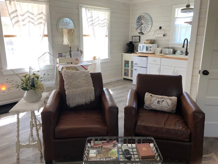 მე და ჩემი მეუღლე გადავწყვიტეთ, ტეხასის მშვენიერ შტატში გადმოვიდეთ! უძრავი ქონების გაყიდვის თითქმის 20‑წლიანი გამოცდილების შემდეგ გადავწყვიტე, რომ პენსიაზე გავიდოდი და დავდებოდი იმას, რაც ყოველთვის მსურდა, მას შემდეგ, რაც 20 წლის წინ ვაშინგტონში პატარა სასტუმროს ვმართავდი. ამიტომაც შევიძინეთ რამდენიმე ობიექტი და ფლიგელის შენობა გადავაკეთეთ Airbnb‑ზე შესათავაზებელ „Acorn Cottages“‑ად. ყოველთვის ვიყავი ანტიკვარიატისა და სხვადასხვა ნივთის კოლექციონერი და გამყიდველი, ამიტომ რაუნდ‑ტოპთან ახლოს ყოფნა ჩემთვის უაღრესად მნიშვნელოვანი იყო! და ფრანგების მოყვარულიც! ჩვენ Airbnb‑ს მეშვეობით სტუმრობა ძალიან მოგვეწონა, ამიტომ ვიმედოვნებთ, რომ თქვენც კომფორტულად იგრძნობთ თავს!