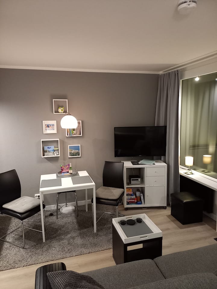 Ბალტიის ზღვისა და სანაპიროს მდებარეობის გვერდითა ხედი იშლება, ჩვენ გთავაზობთ ჩვენს 1-ოთახიან ოთახს.Whg. (28 კვმ) პლუს 8 კვმ აივანი მე-6 სართულზე; თანამედროვე და მუდმივი. Უზრუნველყოფილია ახალი ჩაშენებული სამზარეულო ჭურჭლის სარეცხი მანქანით და ელექტრომოწყობილობებით, ასევე, მიმზიდველი სააბაზანო შუშის საშხაპით/ტუალეტით. Თავისუფლად შეიძლება გამოყენებულ იქნას დანომრილი გარე პარკირების ადგილი. „ჰანსაპარკი“ თითქმის მეზობლად მდებარეობს, პატარა საზოგადოებაა. Საცურაო აუზი უშუალო სიახლოვეს. Wi ‑ Fi ქსელს, პირსახოცებსა და თეთრეულს უფასოდ გთავაზობთ.