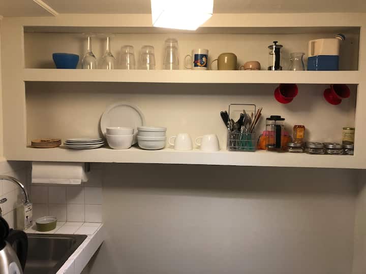Მყუდრო 1 BR ქუჩის დონის თავშესაფარი.