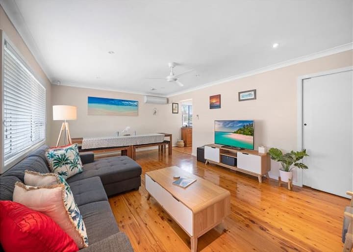 Დაისვენეთ ბალენა-ბლუში ულამაზეს Huskisson &ndash-ში - ფართო, ელეგანტური დასვენება პლაჟიდან სულ რაღაც 450 მეტრში, იდეალურია ოჯახებისთვის ან მაქსიმუმ 10 ადამიანისგან შემდგარი ჯგუფებისთვის. Დაისვენეთ სპა ‑ აბაზანით, ორი მყუდრო დასასვენებელი სივრცითა და სრულად აღჭურვილი სამზარეულოთი, მაღაზიებიდან, სასადილოებიდან და დელფინების თავგადასავლებიდან რამდენიმე ნაბიჯში. Wi ‑ Fi ქსელით, საპირისპირო ციკლის კონდიციონერით, გარე ბარბექიუთი და დაცული პარკირების ადგილით ჯერვის ‑ ბეი არასოდეს ყოფილა მარტივი ან კომფორტული.