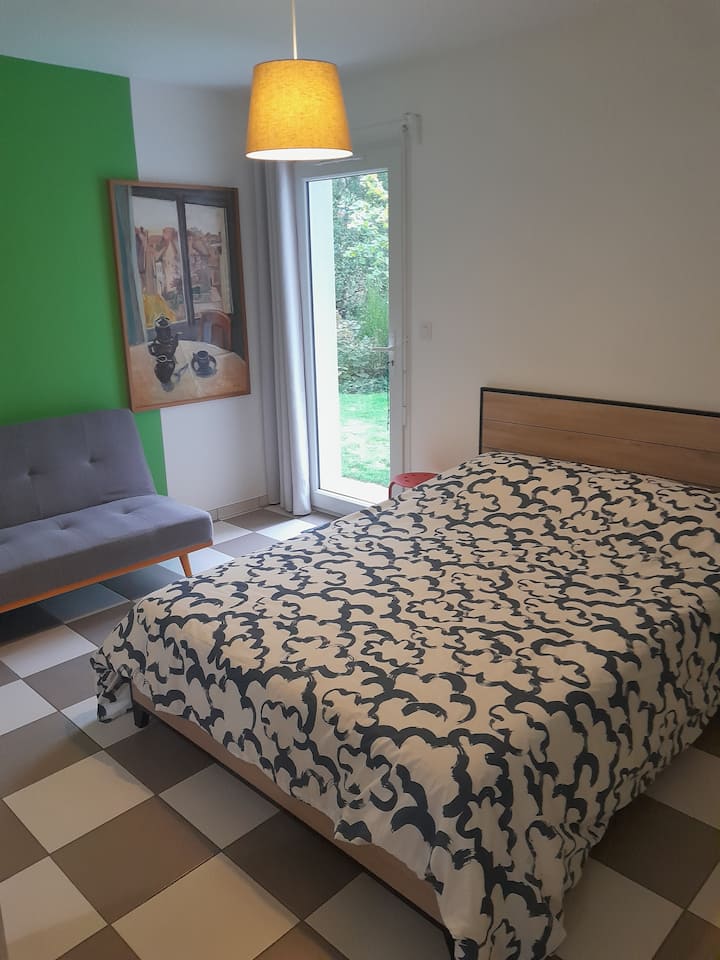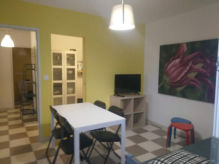 დამოუკიდებელი საცხოვრებელი 2/3 ადამიანისთვის, ბაღი, პარკინგი.