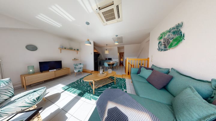 ძველი ქალაქის შუაგულში, რომელიც კლასიფიცირებულია, როგორც ისტორიული ძეგლი, Duplex des Dominicains არის შესანიშნავი 100 მ² დუპლექსი, რომელიც განახლდა 2019 წლის გაზაფხულზე, დიდი ხიბლით. Ის მდებარეობს წყნარ შენობაში, დომინიკის ეკლესიისა და მისი საშობაო ბაზრობის ძირში, დეკემბერში.