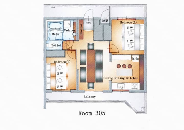 3F/შინჯუკუ ოკუბო/ფართო 2BR 70 ¥/4 საწოლი/A106