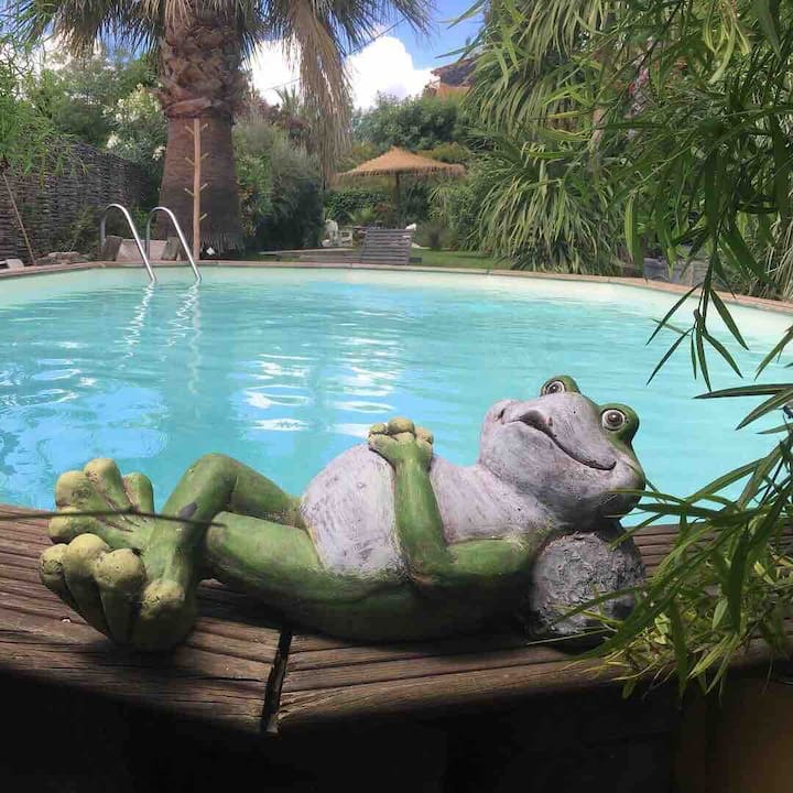 მე ინგლისელი ვარ, 31 წელია, რაც ფრანგ ბერნარს ვართ ქორწინებული. სამოთხის ამ პატარა კუთხეში 1999 წლიდან ვცხოვრობთ. ამ სახლის შეძენას 15 წუთი დაგვჭირდა, რადგან ძველი ქვის შენობები ძალიან გვიყვარს!ჩემი ორი შვილი ჩამოვიდა: ქალიშვილი შვეიცარიიდან, კონსტანცის ტბიდან, ხოლო ვაჟი ავსტრალიიდან, სიდნეიდან. ამიტომ, მე და ჩემი მეუღლე ვფიქრობთ, რომ კარგი იქნება, თუ ჩვენი სამოთხის ნაკვეთს სტუმრებსაც გავუზიარებთ. ჩვენ გვიყვარს ახალი ადამიანების გაცნობა, ეს ყოველთვის გამდიდრებელია!მიყვარს საჭმლის მომზადება, ცურვა და ჩემს ახალ ძაღლთან ერთად ვენაში სეირნობა!ასევე, ძალიან მიყვარს ბაღი და მეცხოველეობა. ყველაფერს გავაკეთებ, რომ თქვენი სტუმრობა საუკეთესოდ ჩაიაროს. მალე გვეწვიეთ!