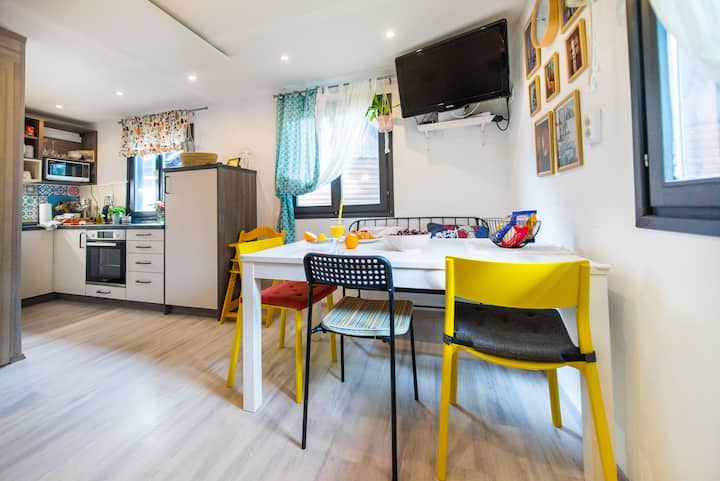 გამარჯობა! ჩვენ ვართ ანა მარია და საშა, 7‑ და 9‑წლიანი ორი მშვენიერი ბიჭის მშობლები. ჩვენი ბინა მდებარეობს კემპ‑ტერმე‑ჩატეჟში. მას სიყვარულითა და ენთუზიაზმით მოვაწყვეთ, რომ სტუმრებს მყუდრო გარემო შეგვექმნა. გვიყვარს ბუნება, მოგზაურობა, სპორტი და გემრიელი კერძების მომზადება.