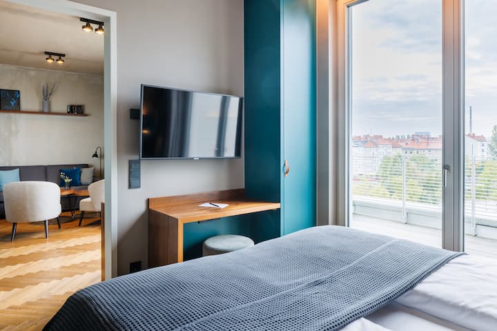 DOWNTOWN ბინები Mitte/Wedding არის მშვიდი მშვიდი ზონა და შთამაგონებელი საწყისი წერტილი ამავე დროს. Შეთავაზება 22 სრულად აღჭურვილი და კონდიცირებული აპარტამენტები მერყეობს 31 კვმ სტუდიო, ფართო 2- და 3-ოთახიანი აპარტამენტამდე 83 კვმ ფართე მანსარდით ფანტასტიური ტერასებით. Თითოეულ ბინას აქვს აივანი, ლოჯი ან ტერასა – გადაჰყურებს შიდა ეზოს ან მშვიდ პრომენადს. Საზიარო შეზლონგი ლაუნჯ-ფრანცისკო ავსებს მიტეს/ქორწილის ცენტრში მდებარე ბინების განსაკუთრებულ მახასიათებლებს. Იდეალურია 2 ან მაქსიმუმ 6 თვით სტუმრობისთვის.