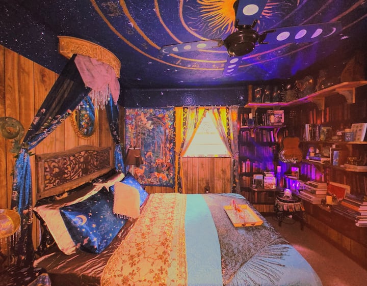 Მთვარისგან დაცული და მისი სინათლის ქვეშ დაცული ეს გორაკის თავშესაფარი მისტიური გონების, თავისუფალი სულისკვეთებისა და თავგადასავლების მოყვარული სულისკვეთების განმარტოებაა. Მოუწოდეთ მთვარისა და სივრცის ყველა ბავშვი გალაქტიკიდან! Sorcerers და sorceresses, ოსტატები და ჯადოქრები, enchanters და enchantresses, ღმერთები და ქალღმერთები, და ყველა სხვა magically დაკავშირებული არსებები, ისევე როგორც არასამთავრობოagic ვაჭრობის დარწმუნებული არიან, რომ აღმოჩნდნენ სახლში თბილი მისასალმებელი, კომფორტი, და საკურთხევლის at Quartermoon სალონში. Საკმარისი ადგილია ზონდის, პერსონალისა და მოსასხამის დასასვენებლად, ასევე, მისტიკური ხელოვნებისა და ჯადოსნურად გამსჭვალული კატალიზატორების სხვა ინსტრუმენტებთან ერთად. Დედოფლის საძინებლით, სააბაზანოთი, ეფექტური სამზარეულოთი და შიდა და გარე საცხოვრებელი სივრცეებით, ეს მოხიბლული აპარტამენტი ძალიან კომფორტულად იტევს ინდივიდუალურ ან წყვილს.