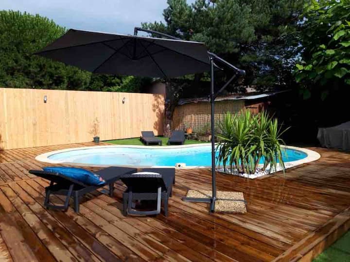 Სახლი, 8 ადამიანი საცურაო აუზითა და ტყით დაფარული ბაღით