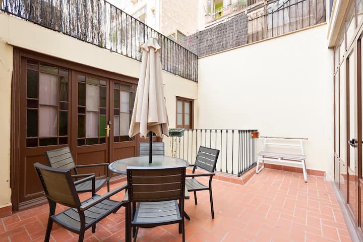 - დასასვენებლად დასაქირავებელი საცხოვრებლები გარე დასაჯდომი ადგილებით: ბარსელონა