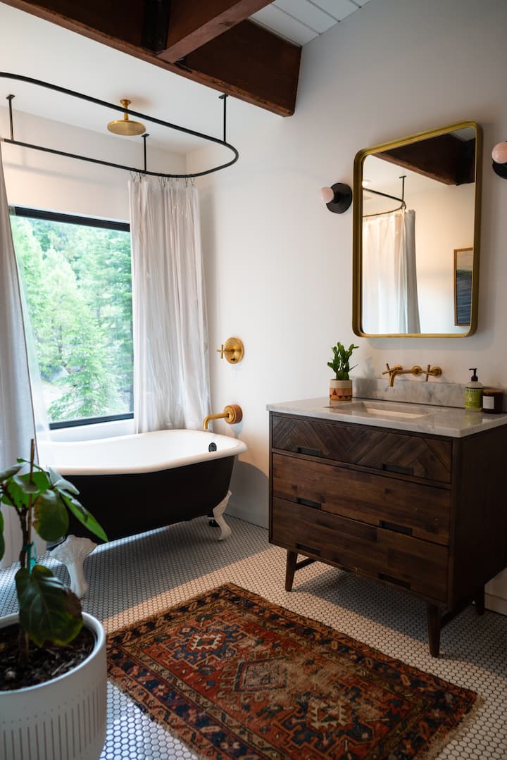 შეაბიჯეთ მთაში მდებარე, სრულად განახლებულ „The Blackhouse Hideaway“‑ში, სადაც თანამედროვე ლუქს‑კლასი ტაჰოს ხიბლს ერწყმის. სახლში შესვლისთანავე მაღალი ჭერისა და ფართო ფანჯრებიდან ტყისა და მთების ულამაზესი ხედები იშლება, რის შემდეგაც სახლის ინტერიერი თითქოს გარემოებაში გადადის.