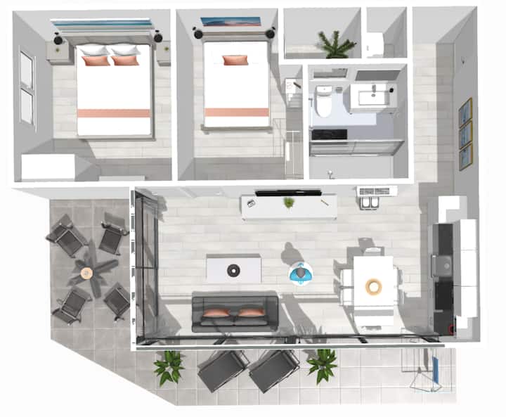 Მათში თქვენ გექნებათ ყველა საჭირო კომფორტი საოცნებო დასვენებისთვის, ასევე, პირადი ტკბილეული, რომ თავი ისე იგრძნოთ, როგორც საკუთარ სახლში. Ისინი ნათელია, ტერასით, აქვს კონდიციონერი, ტელევიზორი ბრტყელეკრანიანი სმარტ-ტელევიზორით საერთაშორისო არხებით, Wi ‑ Fi კავშირი და ელექტრო ჟალუზები.