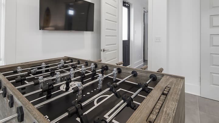Პირველ სართულზე, აუზის ტერასიდან, არის დასაჯდომი სივრცე ბრტყელეკრანიანი ტელევიზორით, გასაშლელი გასაშლელი დივნით, ფოსბოლის მაგიდით და აბაზანა-ტუალეტით. Იდეალურია შიგნით გასართობად, აუზისა და გრილის მოსაპირკეთებელი სივრცის ღია ხედით. Გასრიალებული შუშის კარი იხსნება 8x12 ცალკე აუზამდე და აქვს მიმდებარე შეზლონგის სკამები, გარე თამაშები და გარე ნახშირის გრილი (გთხოვთ, თან იქონიოთ საკუთარი ნახშირი).