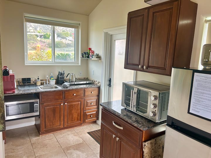 Ჩვენ ვართ ედ და ვიქტორია Srour და მოხარული ვართ, რომ თქვენ, როგორც ჩვენი სტუმრები! Ჩვენ ვცხოვრობთ ქალაქგარეთ, ულამაზეს ტბებში, კალიფორნიაში, კაზინო ბარონასთან და უცნაურ ქალაქ რამონასთან ძალიან ახლოს. Ჩვენი 3 ჰექტარი საკუთრება მთლიანად გამორთულია ქსელიდან! Ჩვენ სიამოვნებით ვტკბებით ხეხილის ბაღით, ბოსტნეულისა და ბალახის ბაღებით და ვზრუნავთ ჩვენს კვერცხისფერ ქათმებსა და ძაღლზე. Ჩვენ ვცხოვრობთ ოჯახური ცხოვრების სტილით და სიამოვნებით ვხვდებით ჩვენს ახალ სტუმრებს! Ჩვენ ასევე ვნებიანი მზარეულები ვართ და გვიყვარს ახალი საკვების მომზადება ნულიდან. Ბევრი ჩვენი კვება მზადდება ჩვენი საკუთარი ბაღებიდან! Ჩვენ გვიყვარს სან-დიეგოში ცხოვრება და ახლომდებარე მთებსა და პლაჟებზე სიარული ან ლაშქრობა და დასვენება. Ჩვენ თავისუფლად ვსაუბრობთ არაბულად და ედ საუბრობს ღირსეულ ებრაულადაც. ჩვენი საქმიანობის მთავარი პრინციპი ყოველთვის იყო „მომხმარებელი ყოველთვის მართალია“. მოხარული ვართ, რომ თქვენი სტუმრობა კომფორტული, მშვიდი და სასიამოვნო გექნებათ.
