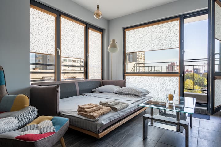 Ბუტიკ-ოტელების 1-საძინებლიანი ბინა ქალაქის შუაგულში