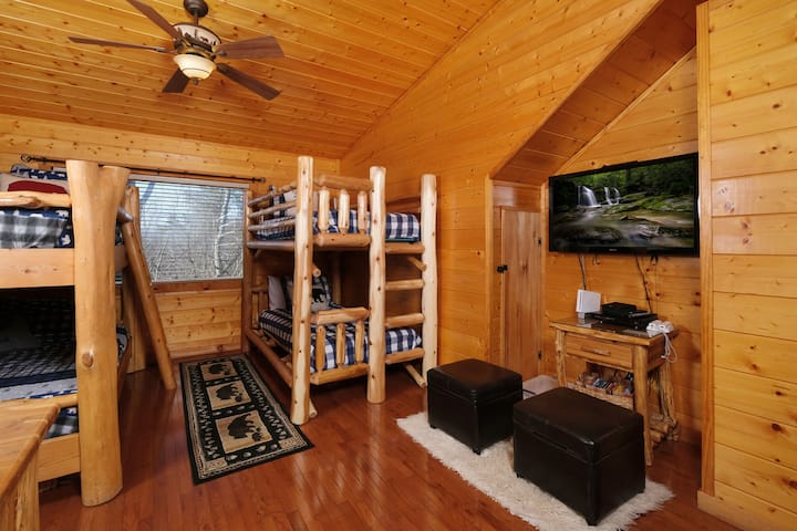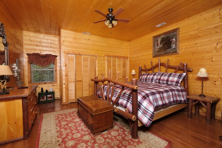 Ეძებთ ხის სახლს, საიდანაც სმოკის მთების ყველაზე არაჩვეულებრივი ხედი იშლება? Majestic Escape არის 3-საძინებლიანი ლუქს-კლასის ხის სახლი, რომელსაც 10 საძინებელი აქვს და სწორედ ის არის, რასაც ეძებთ თქვენი Smoky Mountain არდადეგების დროს! Ორივე დონეზე სმოკინგის თვალწარმტაცი ხედი, ჰიდრომასაჟიანი აუზი და სახალისო სათამაშო ოთახი, თქვენ ისიამოვნებთ თქვენი სტუმრობის ყოველი წამით უმშვენიერეს დიდებულ გაქცევაში!