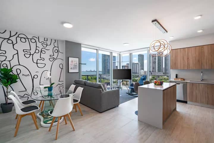 Პანორამული ყურე + ქალაქის ხედები! 2Bdrm Condo- Miami