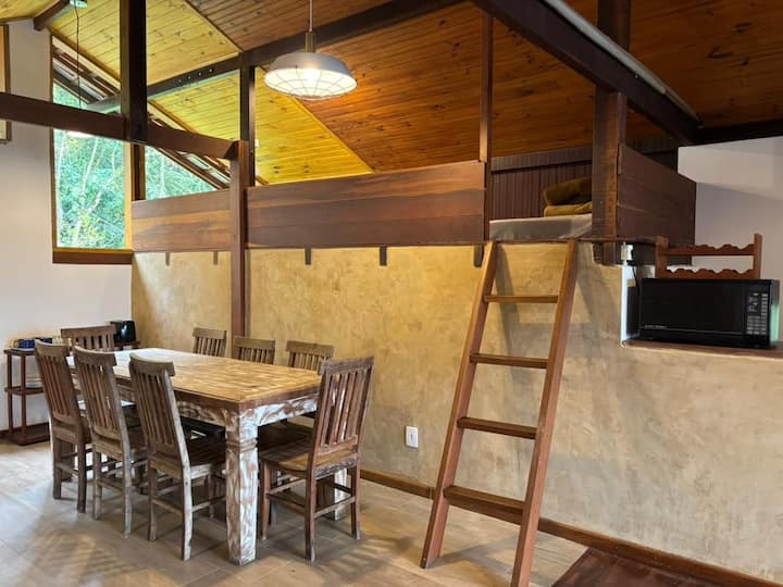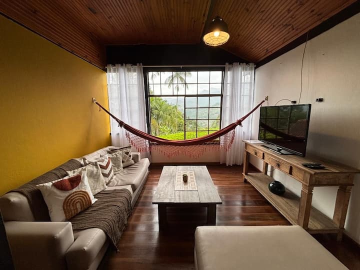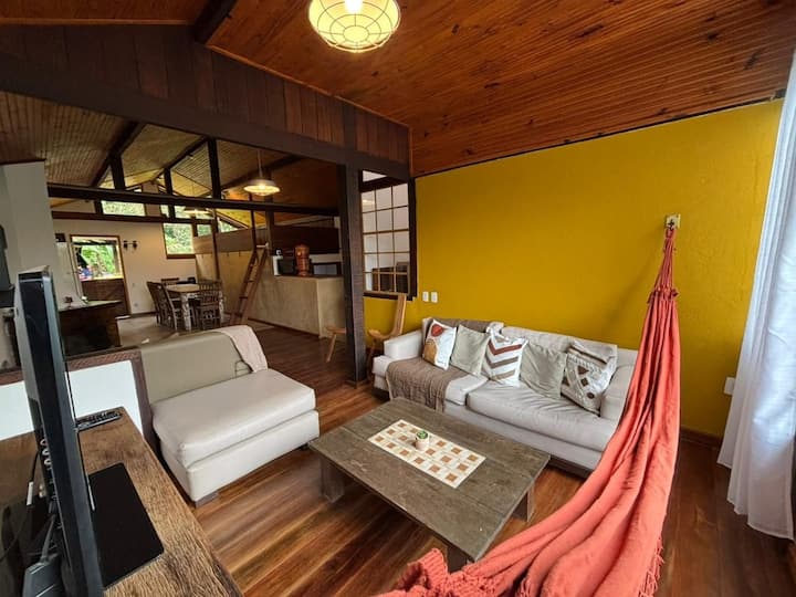 ბუნების გულში მდებარე მშვიდი თავშესაფარი მათთვის, ვისაც სიმშვიდე, სუფთა ჰაერი და ახალი ნაბიჯების გადადგმა სურს. „Hortênsia Chalet“ ჩვენს საცხოვრებელში ყველაზე დიდი, ფართო, ფუნქციური და მომხიბვლელი საცხოვრებელია. აქ არის გაერთიანებული მისაღები ოთახი და სამზარეულო, ფანჯარასთან ჩამოსაკიდი ჰამაკი და მთების განსაცვიფრებელი ხედები — იდეალური ვარიანტი წყვილისთვის ან მთელი ოჯახისთვის.