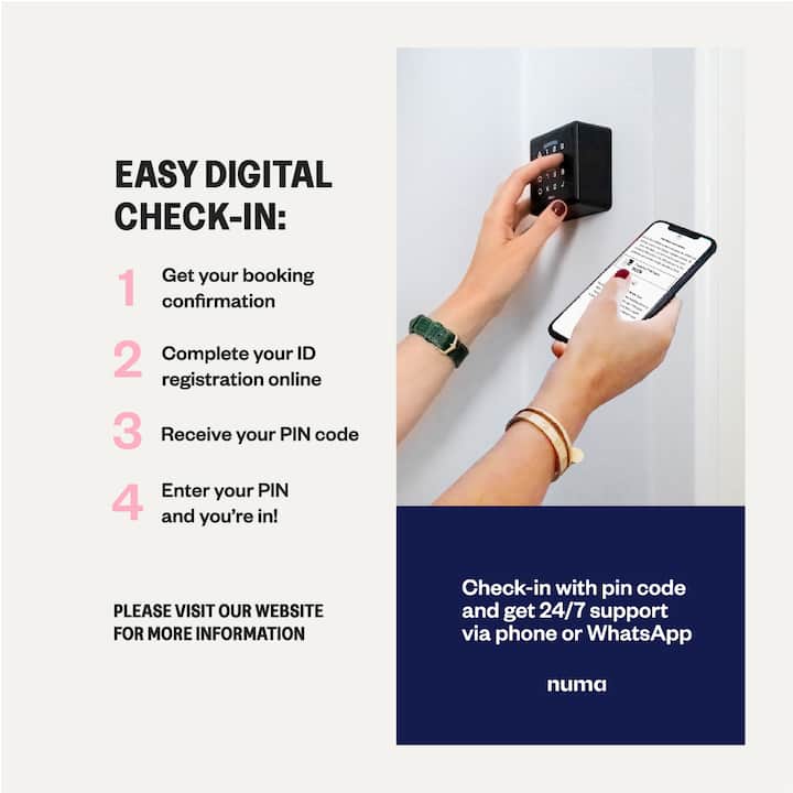 Ნუმა ევროპის ყველაზე პოპულარულ ქალაქებში ციფრულად მართული ოთახებისა და ბინების მთავარი პროვაიდერია – საქმიანი მოგზაურობებისა და დასვენებისთვის. Ისიამოვნეთ ციფრული პირველი სტუმრობით, მარტივი დაბინავებითა და ოთახზე წვდომით. Ჩვენს საცხოვრებლებში არის უნიკალური დიზაინი, სწრაფი Wi ‑ Fi კავშირი, სრულად აღჭურვილი სამზარეულოები, პროდუქტიული სამუშაო სივრცეები და მაღალი ხარისხის საწოლები, რომ თავი ისე იგრძნოთ, როგორც საკუთარ სახლში, სადაც არ უნდა წახვიდეთ. Ჩვენ მზად ვართ თქვენ დასახმარებლად დღე ‑ ღამის ნებისმიერ მონაკვეთში SMS ‑ ით, ზარით ან ელფოსტით.