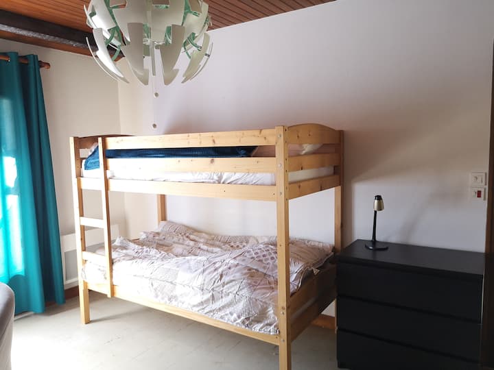 1 გასაშლელი დივანი, 1 ორსართულიანი საწოლი