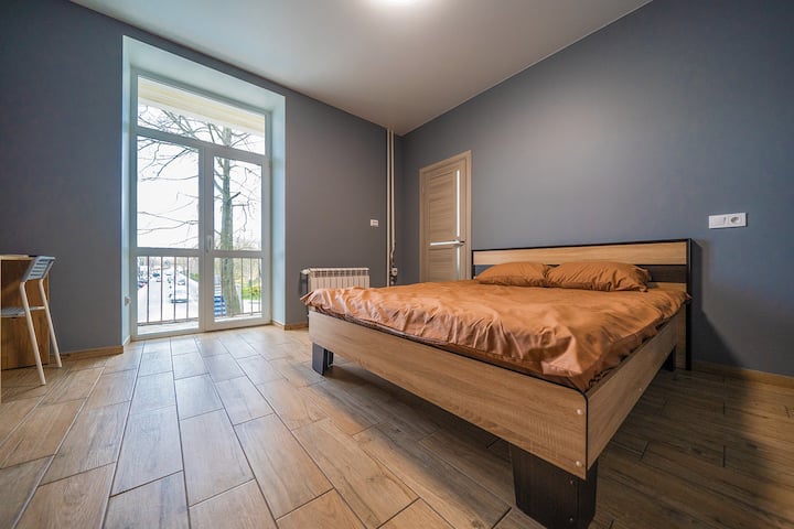 Ბინა ცენტრში, რომელიც პარკს გადაჰყურებს