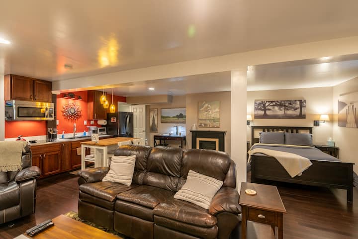 Მე და სენდი ძალიან წყნარ და კერძო სტუდიოს ტიპის საცხოვრებელს ვმართავთ ლეიკ-პლაციდში. Ჩვენ ღია ცის ქვეშ ვართ და გვსიამოვნებს თეთრწყლიანი კაიაკინგი, ჯომარდობა, ველოსიპედებით სეირნობა, x-c თხილამურებით სრიალი და მრავალი სხვა.